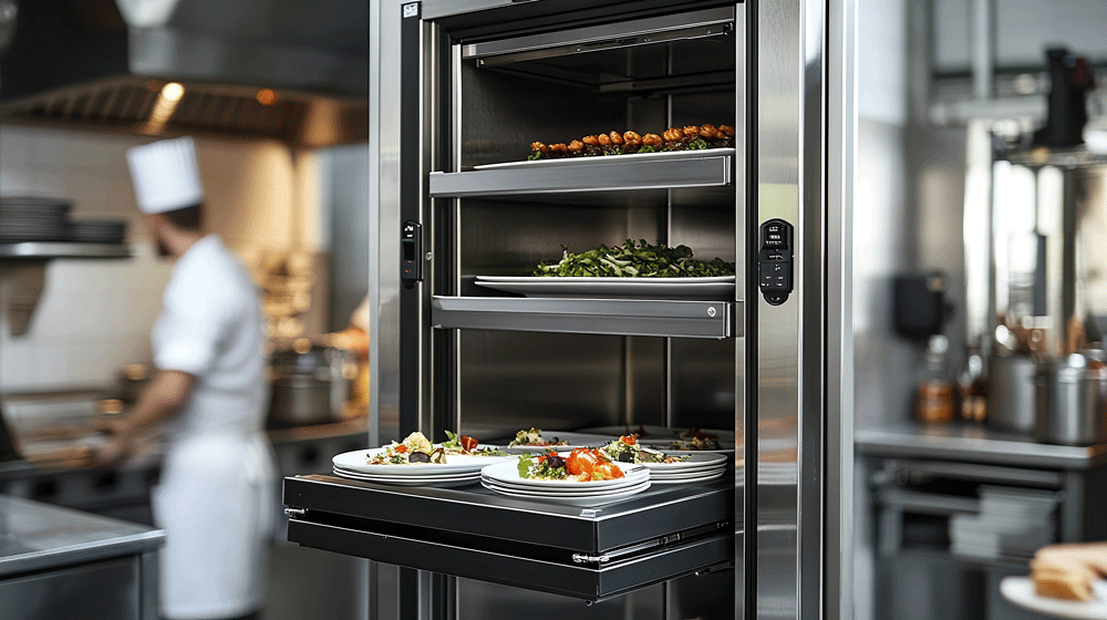 Most service lift cabins are designed for light goods and are often installed in very confined spaces. This makes COMBIVERT S6 servo drives the ideal choice, as they offer a compact, space-saving solution for smaller conveyor capacities and can supply a 24 V motor brake in the converter. In addition, the COMBIVERT G6 is a compact open-loop converter with a built-in filter and display.