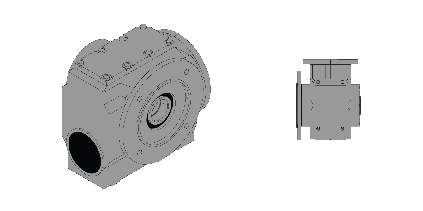 In a worm gearbox, the worm shaft engages with the worm wheel and drives it. The worm gear set enables ratios of 1:40 or higher. This makes it ideal whenever high speed reductions are required. One of the main features of the gearbox, which is one of the so-called angular gearboxes, is the 90 degree arrangement of the output axis to the input axis. As with the bevel gearbox, this has the advantage that the worm gearbox has particularly compact dimensions and is therefore designed for tight installation spaces.