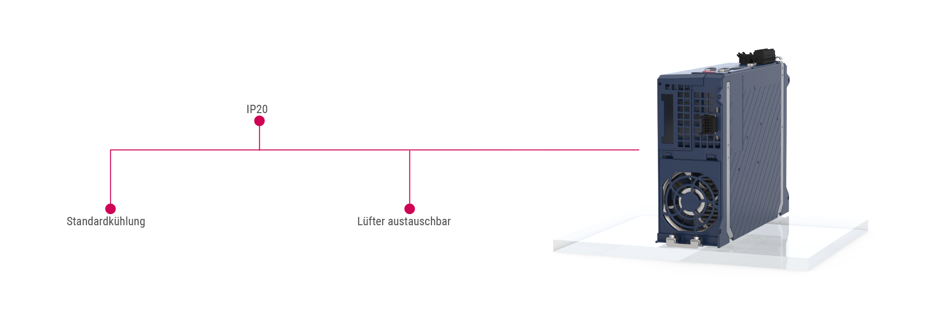 | Funktionale Sicherheit | STO | STO, SBC und optional geberbehaftete drehzahl-/lageabhängige Sicherheitsfunktionen | STO, SBC und geberlose drehzahlabhängige Sicherheitsfunktionen |