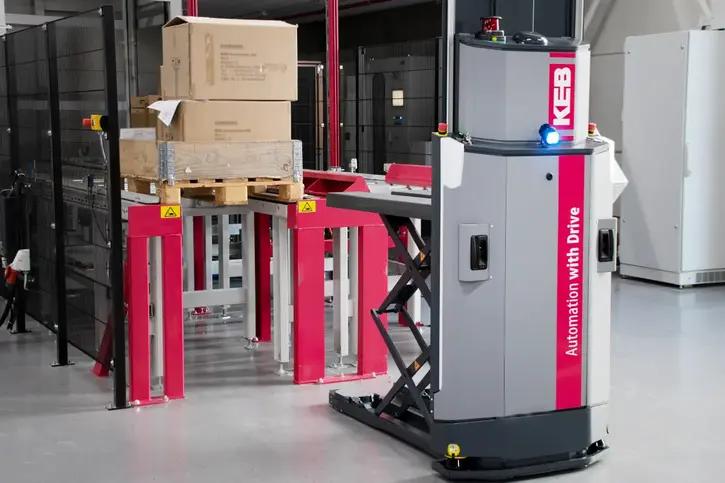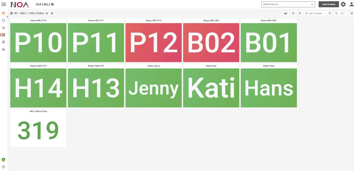 Auch KEB selbst setzt in der hauseigenen Produktion auf die offene Automatisierungsplattform NOA. Unter den Namen „Hans“, „Jenny“ und „Kati“ sind in den Produktionshallen insgesamt drei fahrerlose Transportsysteme (AGVs) unterwegs, um Produkte und Materialien von A nach B zu befördern. Sollte beispielsweise die Verbindung zu einem der Fahrzeuge verloren gehen und dieses infolgedessen zum Stillstand kommen, schaltet das AGV in einen Fehlerzustand. In einer großen Produktionshalle ist dann aber nicht immer sofort zu erkennen, wann und wo die AGVs zum Stillstand gekommen sind. Vor diesem Hintergrund wurde mit NOA eine Möglichkeit geschaffen, Condition Monitoring der Fahrzeuge durchzuführen. Das Ziel war, alle relevanten Statusinformationen an einer zentralen Stelle abzubilden. „Wir haben das Condition Monitoring mithilfe des NOA App Builders aufgebaut. Die Daten der AGVs werden über die NOA Communication Apps ausgelesen und in das NOA Portal transferiert, um letztlich alle notwendigen Informationen im zentralen Dashboard darzustellen“, sagt Daniel Preuß, Product Owner IIoT Plattform bei KEB.