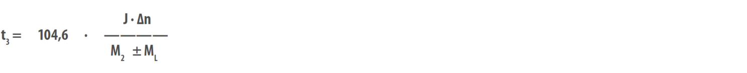 Das dynamische Bremsmoment MA (Nm) wird berechnet aus dem Massenträgheitsmoment J (kgm²) 1) und der Winkelbeschleunigung α (s⁻²).