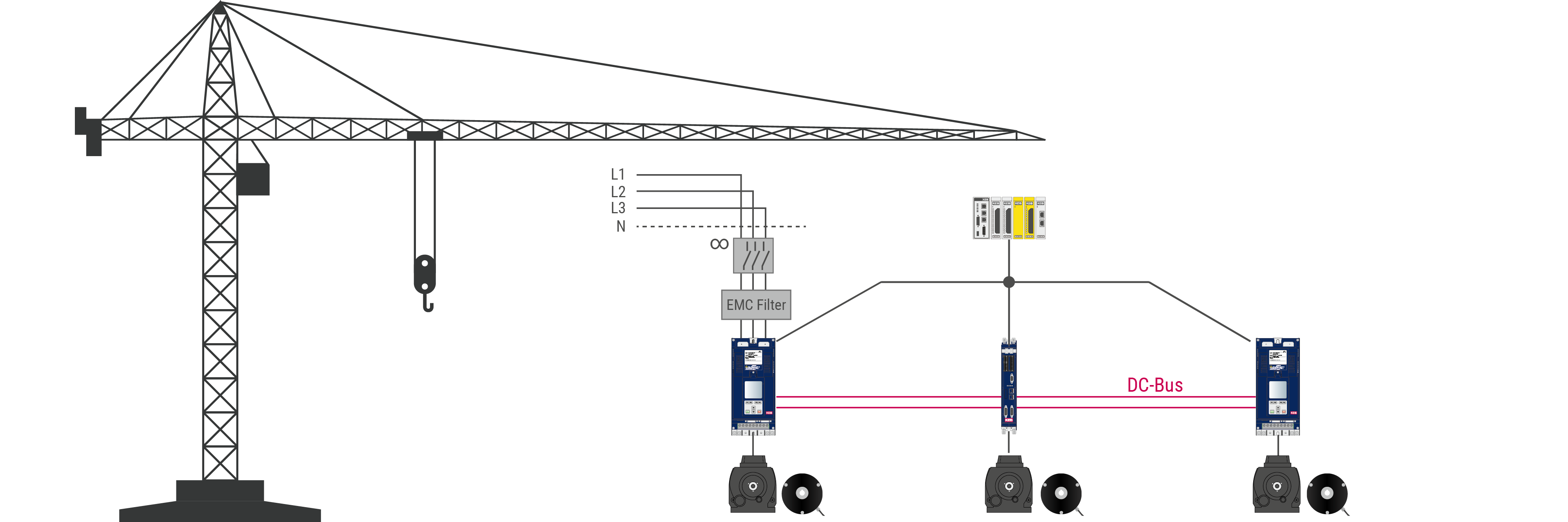 Cranes are indispensable wherever heavy loads need to be moved efficiently and precisely. They are powerful tools when it comes to moving materials on construction sites or handling cargo in ports. The prerequisite for ensuring smooth crane movements is safe operation of the different axes. The wide range of movements that have to be carried out by tower cranes and luffing jib cranes or gantry and overhead cranes require powerful drive technology and a reliable control system.