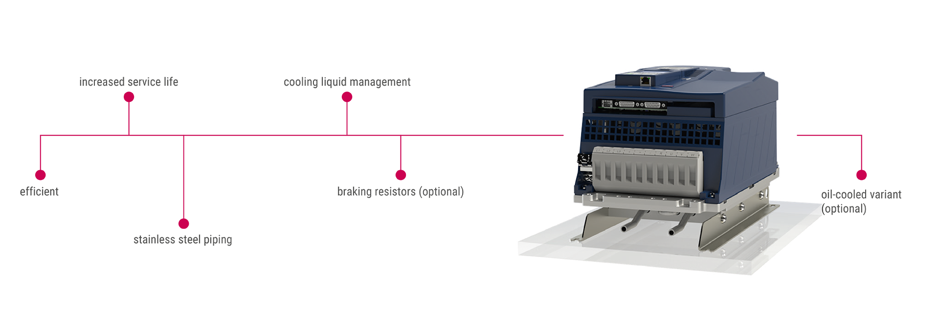 | Brake handling | Evaluation of different types of encoders: TTL, HTL, Resolver, SinCos, EnDat, Hiperface, BiSS | Cooling liquid management |