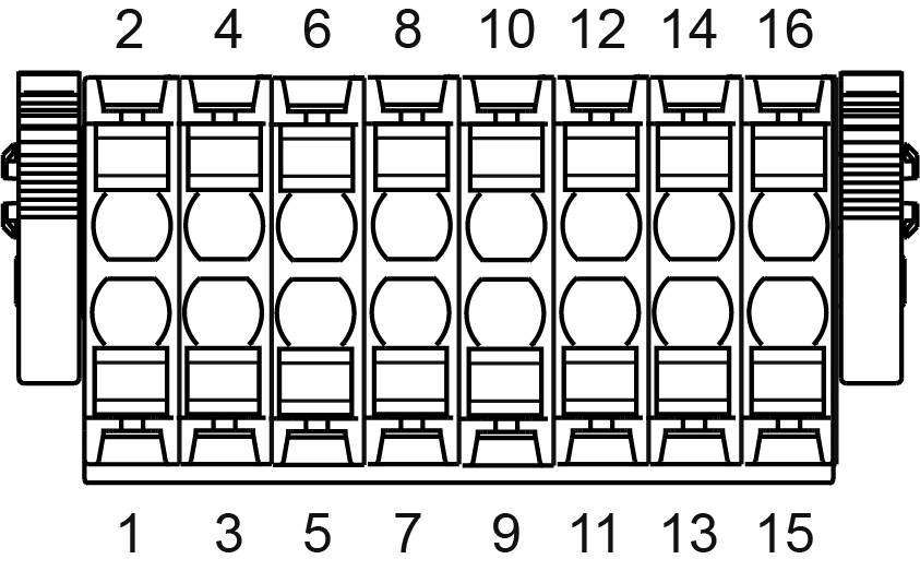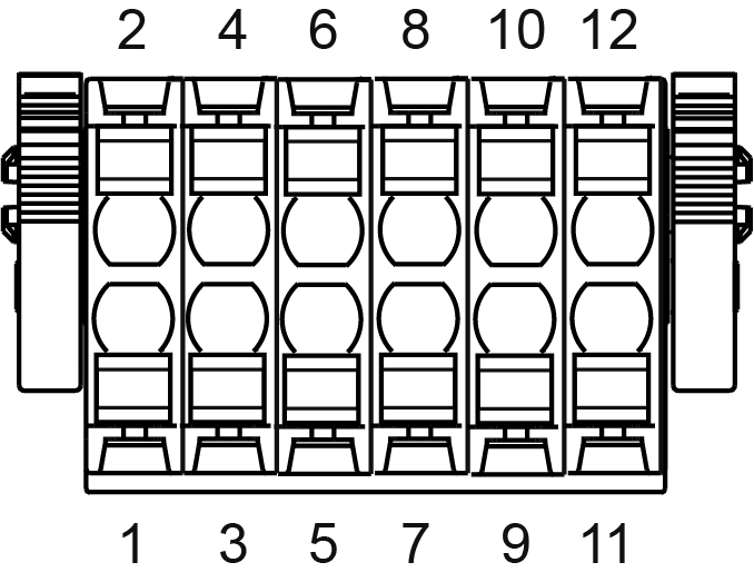 Die Spannungsversorgung erfolgt über die Klemmleiste X6. Abhängig von der Variante kommt eine 4-, 8-, 12- oder 16-polige steckbare Klemmleiste zum Einsatz.